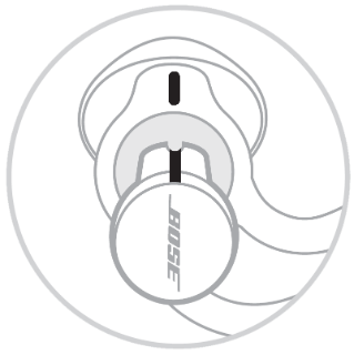 Alinea la línea en relieve cerca de la apertura de la nueva punta StayHear+ Sleep con la ranura de la boquilla en el sleepbud. Desliza la boquilla en la abertura. A continuación, estira suavemente la base de la punta alrededor de la parte posterior del sleepbud para que este quede firme en su lugar. Asegúrate de insertar el sleepbud izquierdo en la punta izquierda y el sleepbud derecho en la punta derecha.