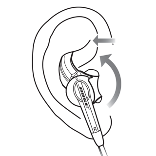Cuando usas los audífonos adecuadamente, te proporcionan la comodidad y claridad que esperas de Bose. Las puntas de silicona StayHear® están diseñadas para descansar cómodamente en la cavidad de la oreja, y también para ajustarse naturalmente al borde superior de la oreja.
