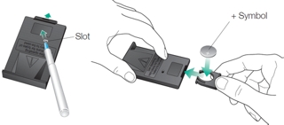 Your remote control may be one of two types. Each is identified by the way it unlocks: slot-style lock or tab-style lock. See the picture below the instructions to help identify your remote.